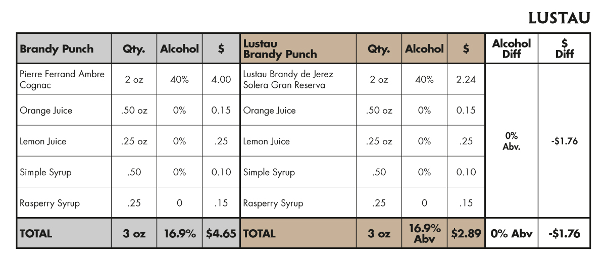 HOW MUCH DOES IT COST TO MAKE A BRANDY PUNCH WITH LUSTAU BRANDY?
