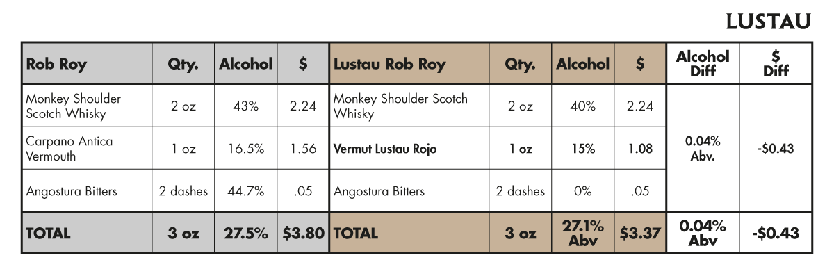 HOW MUCH DOES IT COST TO MAKE A ROB ROY WITH LUSTAU VERMOUTH?