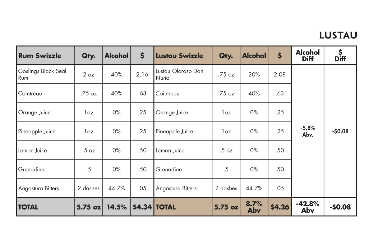 HOW MUCH DOES IT COST TO MAKE A SHERRY SWIZZLE COCKTAIL WITH LUSTAU OLOROSO SHERRY?
